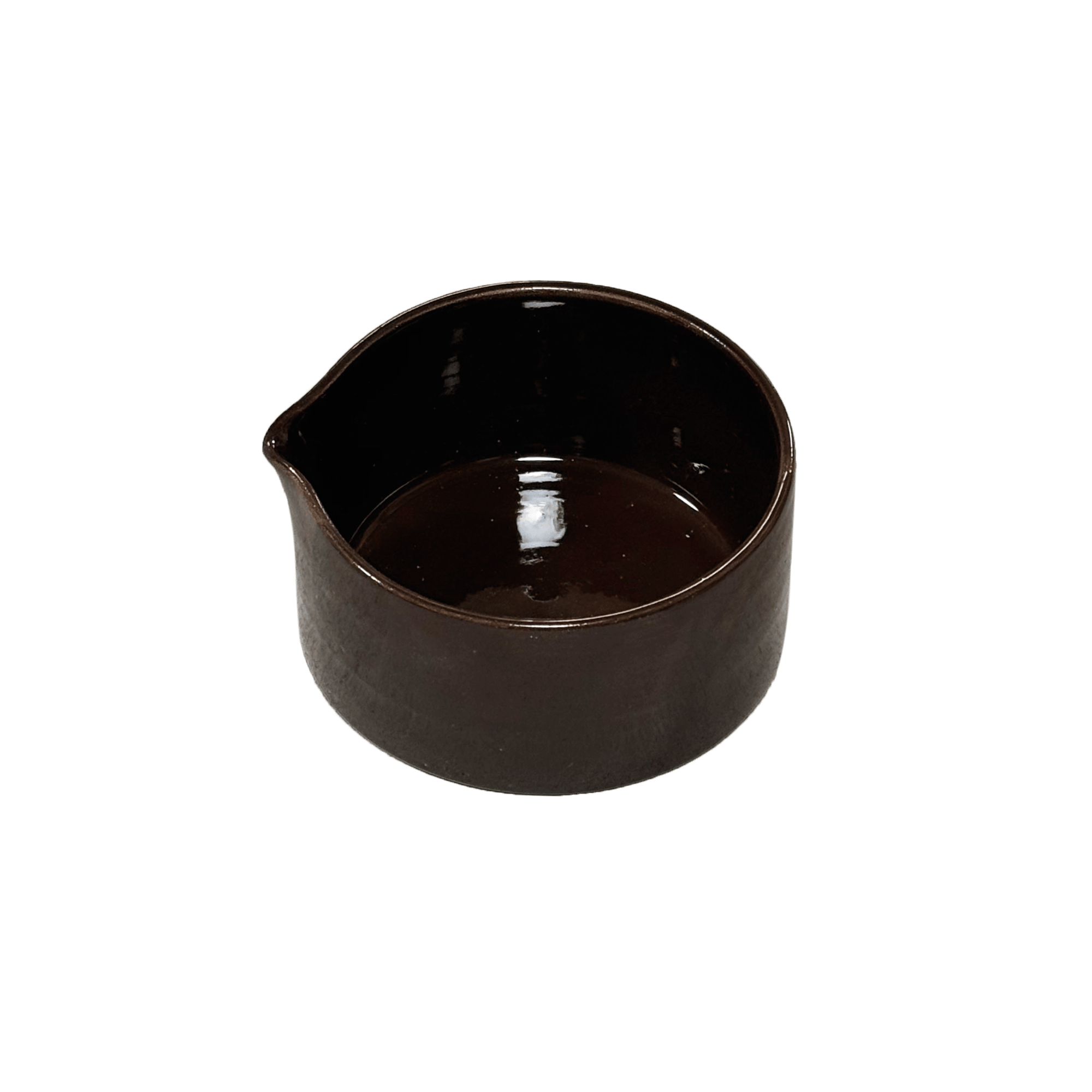 Le bol est entièrement réalisé à la main en grès. Il est recouvert d'un émail brillant chocolat.