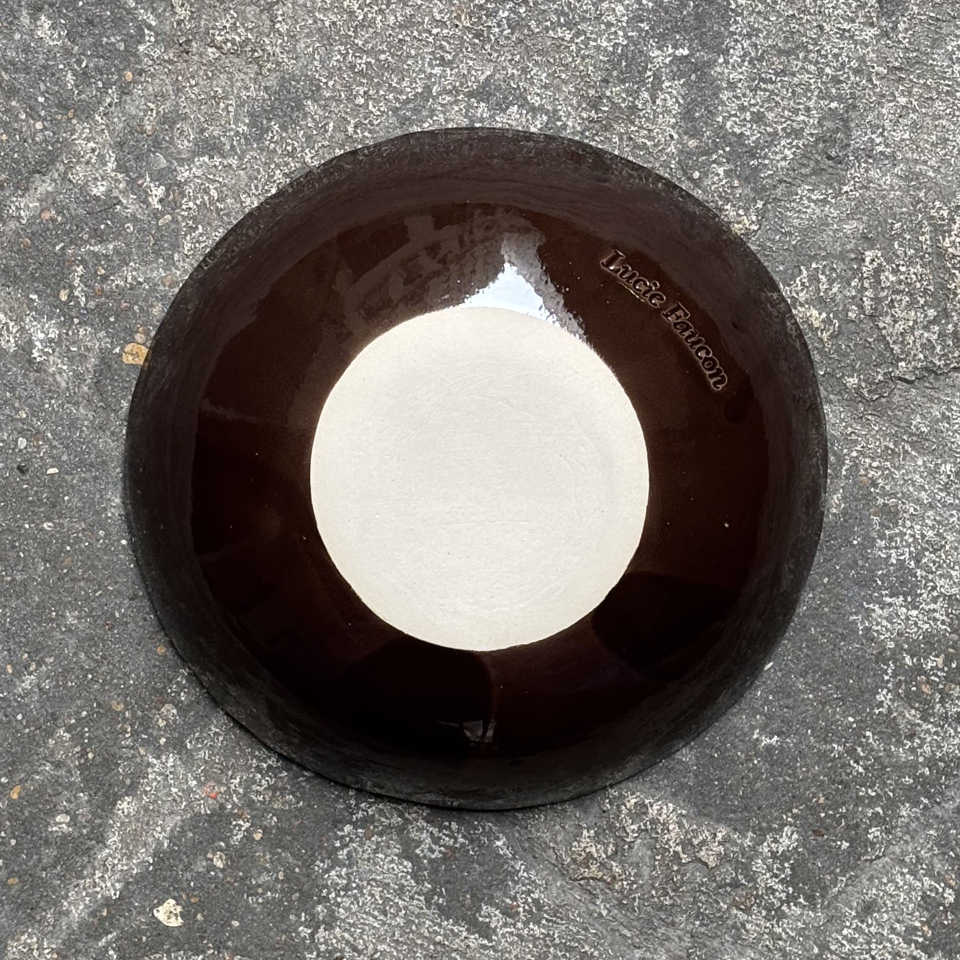 Ces bols sont réalisés entièrement à la main en grès et sont recouverts d'un émail brillant chocolat.