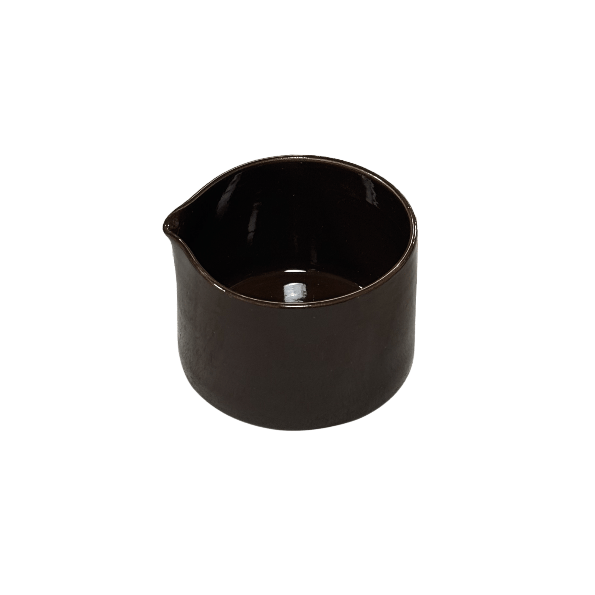 Le verseur à bec est entièrement réalisé à la main en grès. Il est recouvert d'un émail brillant chocolat.